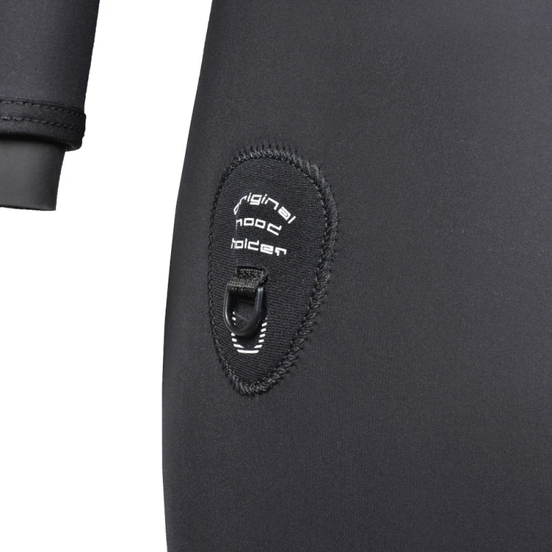 Manchon visage aminci (-2 mm) sur la monopièce col avec une zone autour du visage sans couture pour plus de confort, d’Ă©tanchĂ©itĂ© et de durabilitĂ©. Col lisse intĂ©rieur pour plus d’Ă©tanchĂ©itĂ© et fermeture finement ajustable grâce Ă un velcro Ă©lastique et un grip non agressif qui ne s’agrippe pas sur le jersey et les coutures. Double manchon poignet et cheville zippĂ© avec manchon intĂ©rieur Ă retourner, en jersey intĂ©rieur et nĂ©oprène lisse extĂ©rieur. L’extrĂ©mitĂ© de la couture d’assemblage des manchons intĂ©rieurs est coupĂ©e Ă 45° pour plus d’Ă©lasticitĂ© et de soliditĂ© lors de l’habillage.