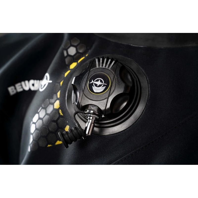 o Manchons en latex haute rĂ©sistance de 1,4 mm aux poignets d’Ă©paisseur et de 0,8 mm d’Ă©paisseur au cou.