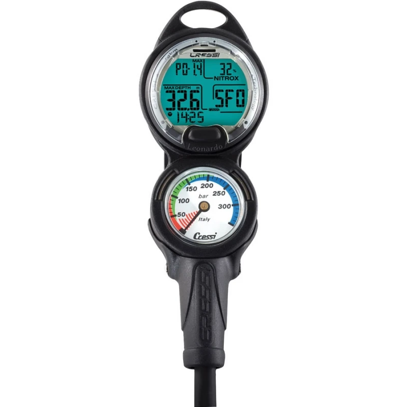 - Leonardo Cressi est un instrument multifonctions pour les plongées sportives, capable de fournir toutes les informations nécessaires concernant la profondeur, les temps de plongée, les éventuelles nécessités de décompression, la vitesse de remontée et les intervalles de surface entre une plongée et la suivante.