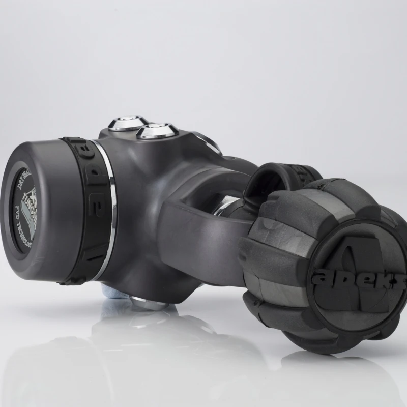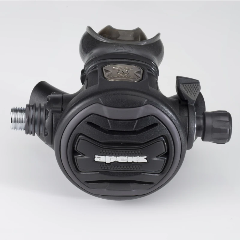 - Appuyez sur les côté pour bénéficier d’un faible débit, pratique pour contrôler le gonflage d’un parachuten Appuyez au centre pour bénéficier du débit maximal, idéal pour purger un détendeur.
