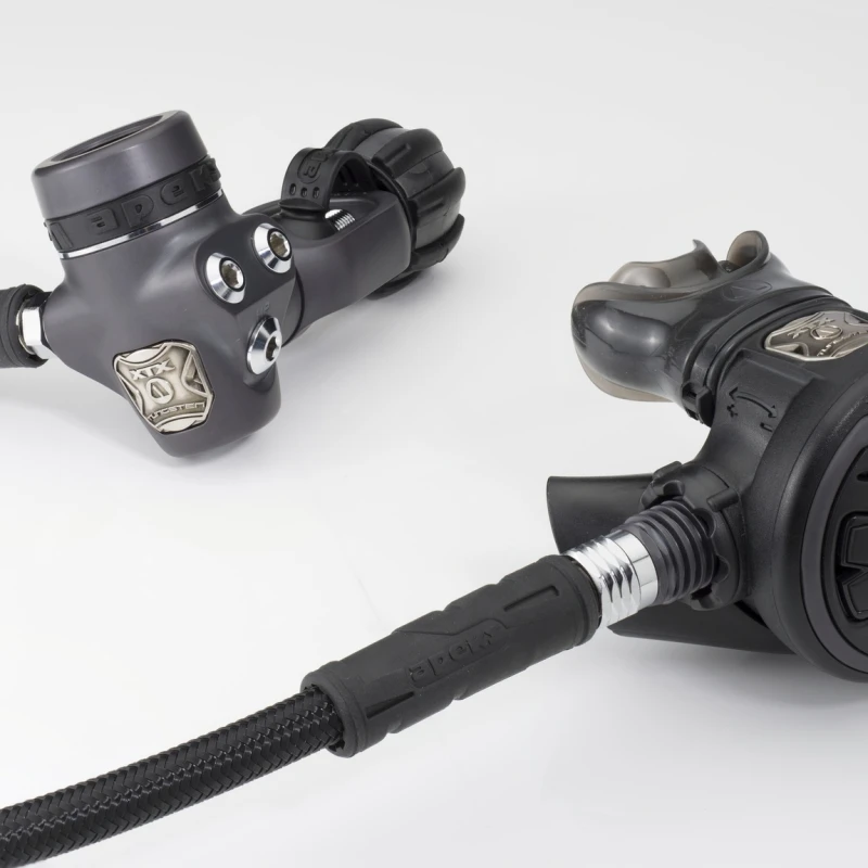 - Les flexibles tressés sont montés en standard sur tous les détendeurs. Ils sont plus légers, plus souple et plus résistant.