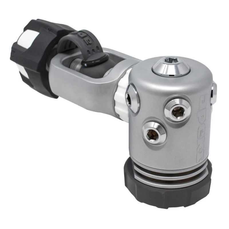 • Modèle unique surcompensé à membrane : lors de la descente, la surcompensation permet à l’air à moyenne pression dans le flexible de circuler plus rapidement qu’à pression ambiante. Les performances sont ainsi meilleures en profondeur.