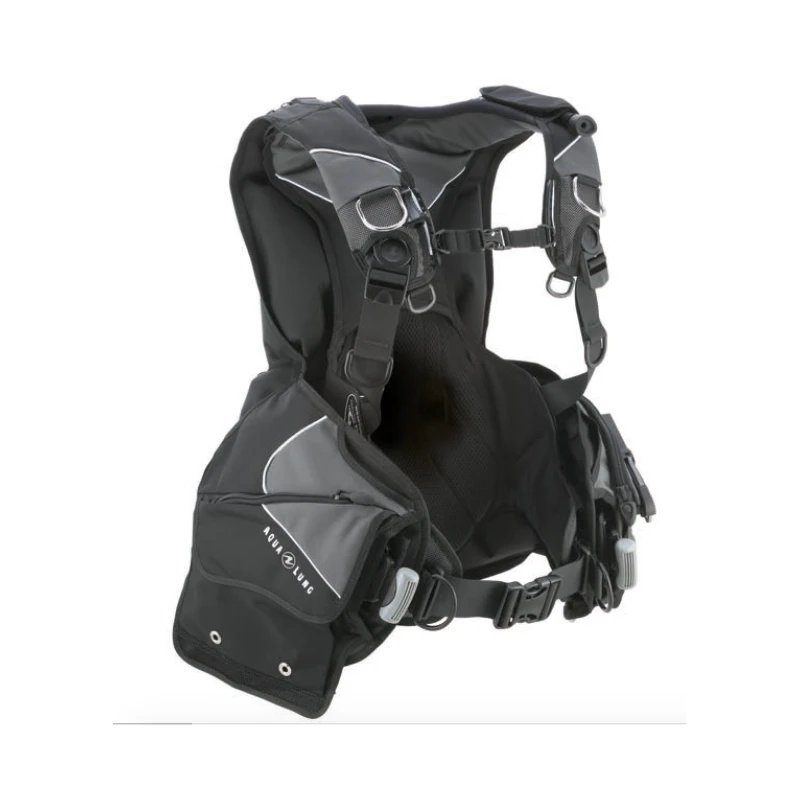 - Une poche octopus est placée sur le dessus du lobe droit du gilet. L’octopus est facile à ranger et à déployer. Il reste visible et accessible tout au long de la plongée.