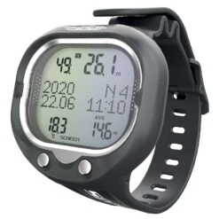 Le contraste et la luminositĂ© peuvent ĂŞtre rĂ©glĂ©s, ainsi que le mode (automatique ou manuel) et le temps d’Ă©clairage arrière (de 2” Ă 60”).Les mesures d’affichage sont de 4×4,7cm et celui-ci est protĂ©gĂ© par une coque solide recouverte de caoutchouc. Dimensions cadran 6,7x7cm. La sangle est longue et conçue pour attacher le Seac Screen mĂŞme au-dessus d’une combinaison Ă©tanche. Longueur totale, Ă l’extrĂ©mitĂ© opposĂ©e de la boucle: environ 36 cm.