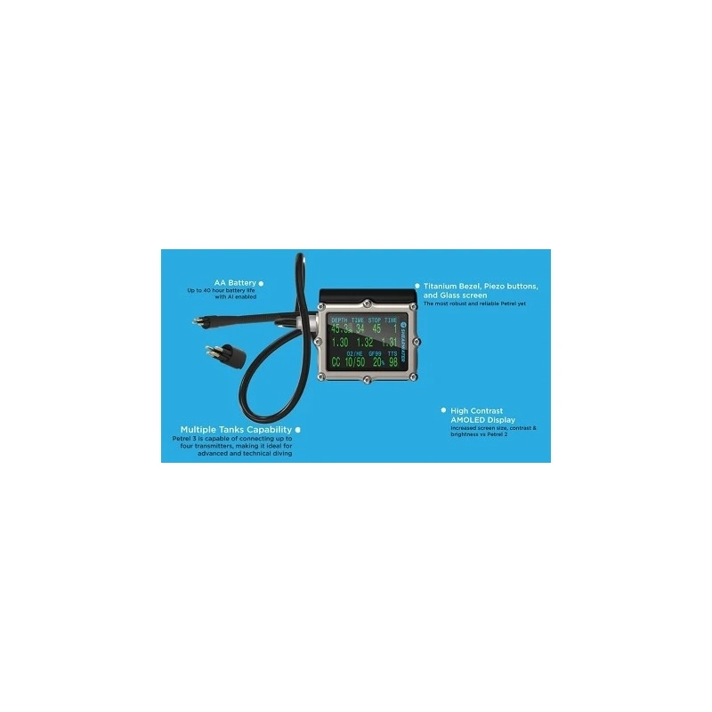 Le SHEARWATER PETREL 3 offre aux plongeurs l’expĂ©rience la plus connectĂ©e. Un superbe Ă©cran AMOLED de 2,6 pouces facile Ă lire est protĂ©gĂ© par une lentille en verre trempĂ©, une lunette en titane et des boutons tactiles piĂ©zo.